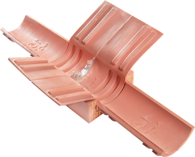 The E-Addblock has both EMC and G&B capabilities. There are eleven different sizes. By tearing off the wing-like inserts, which are of varying thickness, and inserting them in the main block it is possible to accommodate 66 different cable and pipe dimensions, from 3.5 mm to 69.5 mm. The inserts are fitted with a locating ridge that fits exactly into furrows in the main block. These stop the block from ”telescoping”. A seal using E-AddBlocks is as secure and tight as one using standard blocks. Both types can be combined in a transit, which makes the MCT Brattberg seal system very flexible.