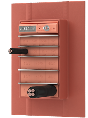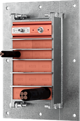 The system consists of a frame, rubber blocks and a compression unit. The frame is casted or bolted to a Ex hazardous structure and packed with rubber blocks suited for each cable and pipe dimension. The compression unit is inserted to compress the rubber blocks against cables and pipes to establish a tight seal.