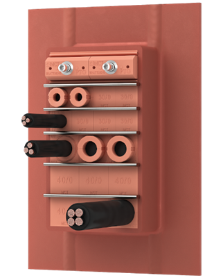 The system consists of a frame, rubber blocks and a compression unit. The frame is casted or bolted to a structure and packed with rubber blocks suited for each cable and pipe dimension. The compression unit is inserted to compress the rubber blocks against cables and pipes to establish a tight seal.
