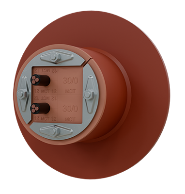 The round transit system consists of a round rubber frame and rubber blocks. The RGP circular multi cable & pipe transit is assembled in sleeves, pipes, drilled or cast holes and packed with rubber blocks suited for each cable and pipe dimension. The compression bolts are tightened to compress the rubber blocks against cables and pipes to establish a tight seal.
